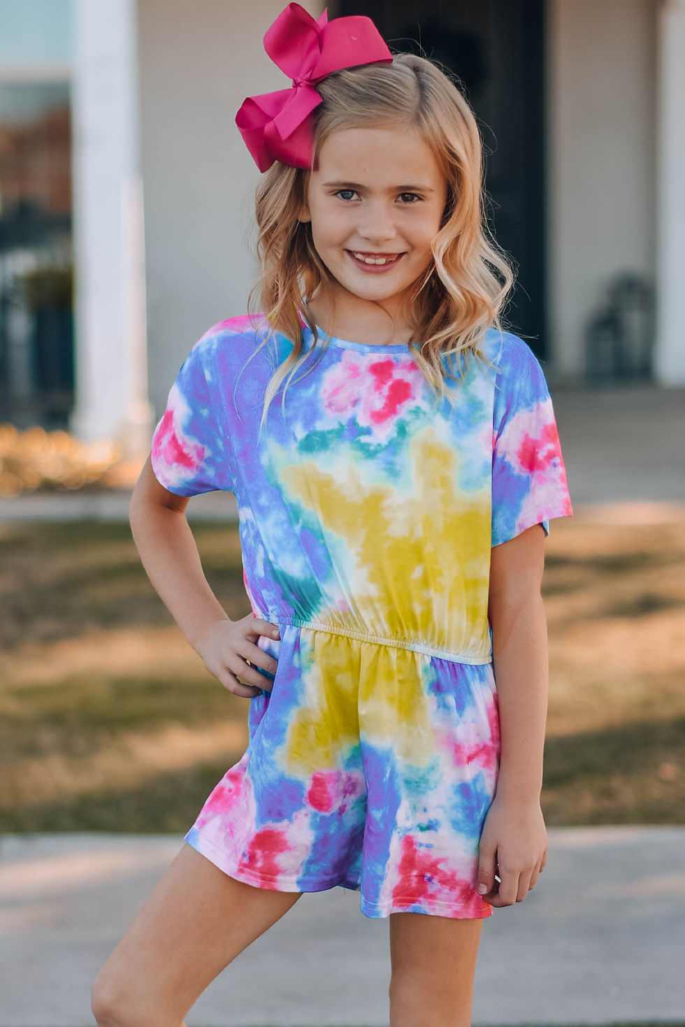 Yellow Tie-dye Short Sleeve Little Girl Romper