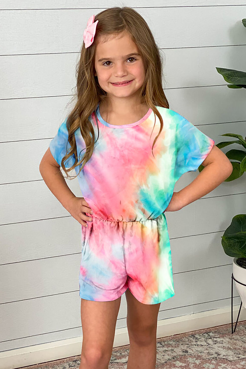 Rose Tie-dye Short Sleeve Little Girl Romper