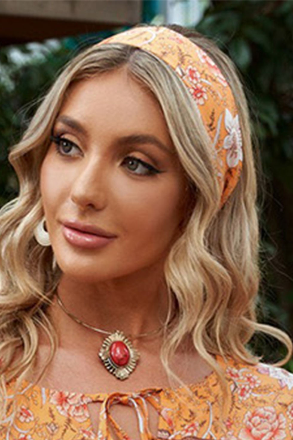 Orange Boho Floral Print Self-tie Hair Ribbon